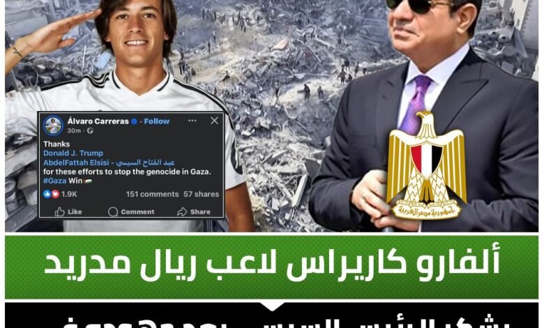 ألفارو كاريراس لاعب ريال مدريد يشكر الرئيس السيسي بعد جهوده في وقف إطلاق النار في غزة