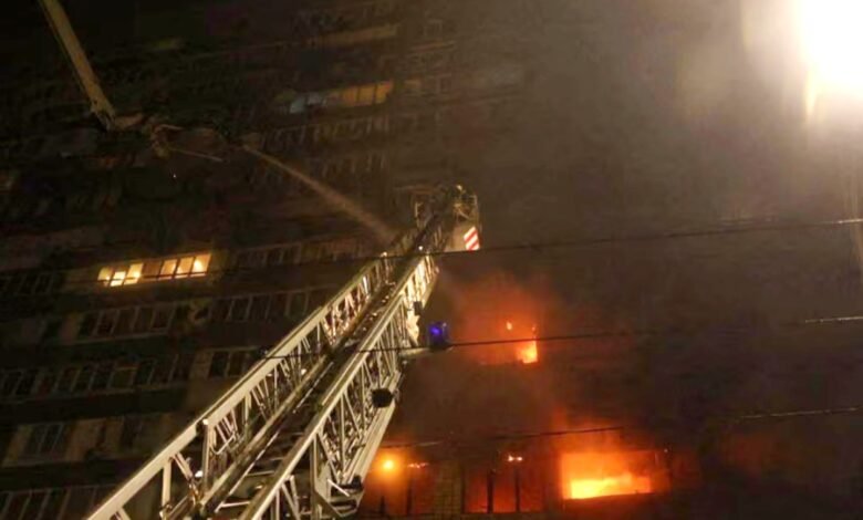 قال رئيس بلدية كييف فيتالي كليتشكو إن الهجوم الروسي استهدف “البنى التحتية الحيوية” للعاصمة، مشيرًا إلى أن شظايا الطائرات المسيّرة سقطت على عدد من الأحياء، ما تسبب بحرائق ضخمة في مبانٍ سكنية. وانتشرت على مواقع التواصل مقاطع تُظهر رجال الإطفاء يكافحون ألسنة اللهب في عمارات متعددة الطوابق وسط انقطاع كامل للتيار الكهربائي.