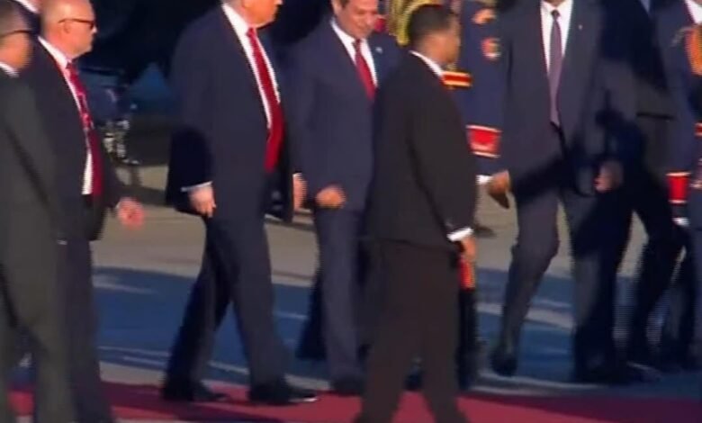 كما هبطت طائرة ترامب في مطار شرم الشيخ وسط إجراءات أمنية مشددة واستقبال رسمي من مسؤولين مصريين كبار.