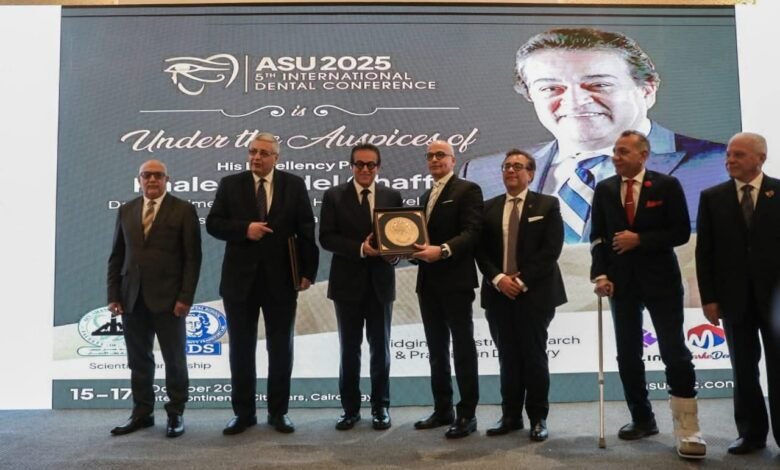 وفي ختام الجلسة الافتتاحية، تم تكريم الدكتور خالد عبدالغفار بدرع التقدير لدوره في دعم القطاع الصحي وتنمية التعليم الطبي، إلى جانب تكريم شخصيات بارزة في المجال الأكاديمي والمهني لمساهماتها في تطوير طب الأسنان.