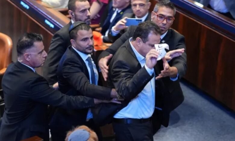 طلبا الاعتراف بفلسطين.. طرد نائبين بالكنيست قاطعا كلمة ترامب