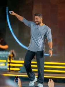 انطلق حفل تامر حسني مساء الخميس في ساحة جامعة بدر الكبرى، وسط تجهيزات ضخمة من إضاءة وصوت وشاشات عرض عملاقة، ساهمت في خلق أجواء مبهجة استقبلها الجمهور بحفاوة وهتاف متواصل مع صعود تامر حسني إلى المسرح، وبدأ نجم الجيل فقرته الغنائية بتحية طلاب الجامعة، معبّرًا عن سعادته الكبيرة بتواجده بينهم، قبل أن يقدم باقة من أبرز أغانيه التي رددها معه الحاضرون كلمة بكلمة، وتنوّعت الفقرة الغنائية بين القديم والجديد، فغنّى تامر أشهر أعماله مثل “عيش بشوقك”، “يا أنا يا مفيش”، “اختراع”، “كل مرة”، و“حلو المكان”، إلى جانب عدد من أغانيه الرومانسية التي طالما ارتبط بها جمهوره.