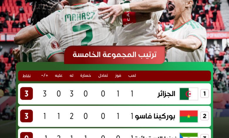 نجح المنتخب الجزائري في اعتلاء صدارة ترتيب المجموعة الخامسة بعد نهاية الجولة الأولى، مستفيدًا من فوزه الكبير على منتخب السودان بثلاثية نظيفة. وظهر “محاربو الصحراء” بصورة قوية عكست رغبتهم في استعادة أمجادهم القارية، حيث فرضوا سيطرتهم منذ الدقائق الأولى، مستغلين الفارق الفني والخبرات الدولية بين الفريقين