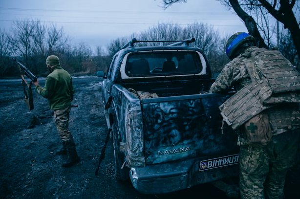 قبيل بزوغ الفجر، ومع درجات حرارة تقترب من الصفر، بدأت عمليات تدوير القوات على امتداد الجبهة الأوكرانية البالغ طولها نحو 750 ميلاً. في موقع سري، استعد أربعة جنود من كتيبة «ذئاب دافينتشي» للصعود إلى ناقلة جنود مدرعة من طراز M113، تمهيدًا للتوجه إلى نقطة آمنة قبل السير على الأقدام نحو مواقعهم الأمامية، حيث سيبقون ما بين 10 و12 يومًا.