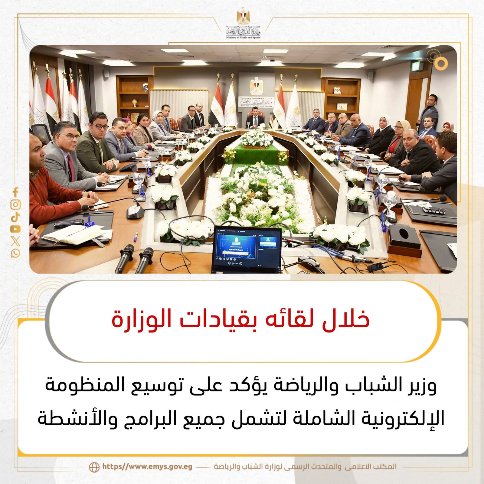 وزير الشباب والرياضة يؤكد على توسيع المنظومة الإلكترونية الشاملة لتشمل جميع البرامج والأنشطة