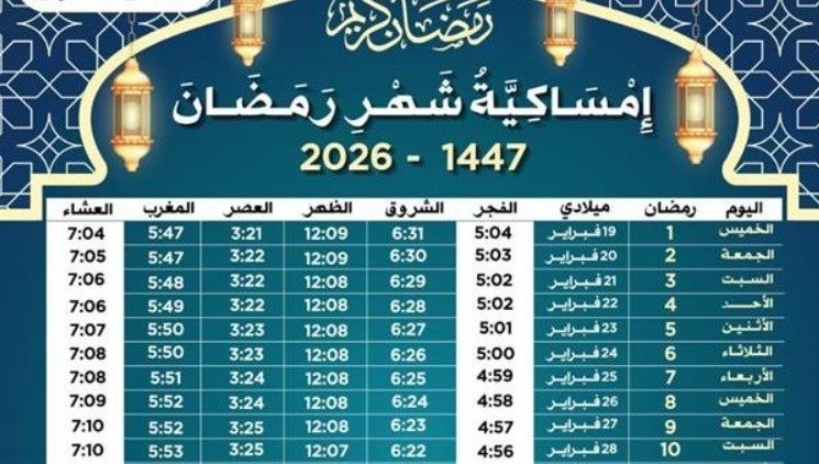 إمساكية شهر رمضان 2026.. مواعيد السحور والإفطار وساعات الصيام