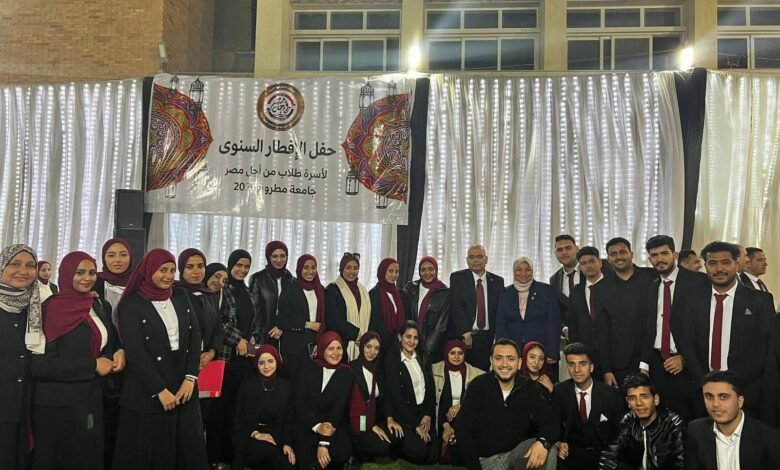 تحت رعاية الأستاذ الدكتور عمرو أحمد المصري رئيس جامعة مطروح، والأستاذ الدكتور أيمن مصطفى عبدالقادر عميد كلية التربية جامعة مطروح، نظّمت أسرة طلاب من أجل مصر بجامعة مطروح يوم 12 مارس فعالية الإفطار الجماعي لطلاب وطالبات الجامعة.