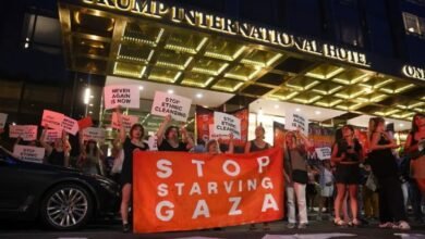 احتجاج يهودي واسع أمام فندق ترامب في نيويورك: لا باسمنا… أوقفوا تجويع غزة