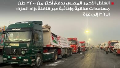 الهلال الاحمر المصري يسير قافله زاد العزه السادسه والثلاثين الي غزة