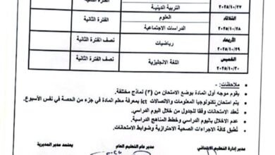 أعلنت مديرية التربية والتعليم بمحافظة المنوفية عن جدول امتحانات شهر أكتوبر للصف الثاني الثانوي للعام الدراسي الحالي، موضحة مواعيد أداء…